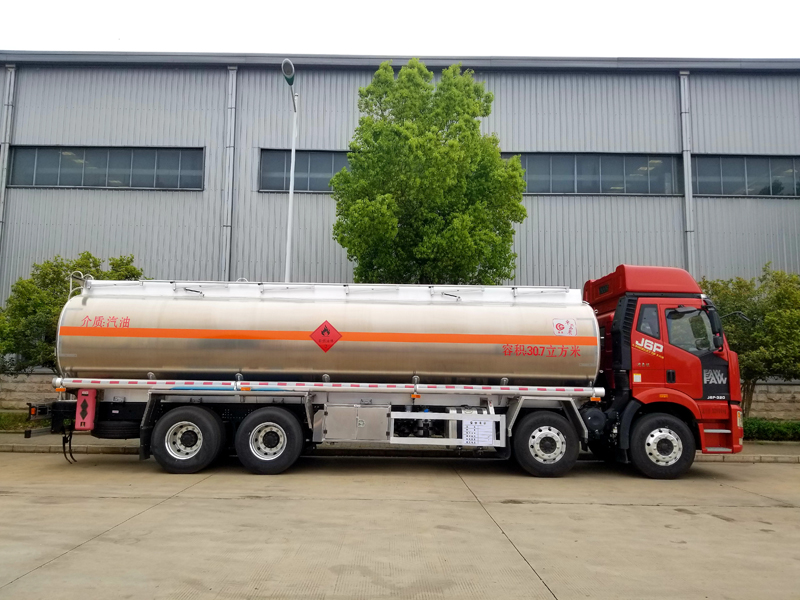 上裝配置:量:11885Kg; 罐體尺寸:(長×長軸×短軸) (mm): 9000/9200×2300×1500.罐體常配為單倉采用5182鎂鋁合金制作,罐體厚度大于等于5MM,帶山東齊魯油泵,泵箱配歐標拉手鎖,一個單呼吸閥的歐標罐口、一個海底閥,兩個自流閥,歐標一套(含歐標罐口,海底閥,油氣回收,防溢流探桿,下裝油口);C:可選裝大流量加油機(上海柏萊稅控加油機、三金稅控加油機、中升稅控加油機)帶15米自動回位卷盤,兩根罐體等長輸油管、兩個滅火器,一個防火帽,靜電卷盤、安全告示鐵牌、工具箱、全車歐式鎖、牌照燈、車尾拖車鉤開孔、其余標配。易燃液體貼“易燃”標,貼